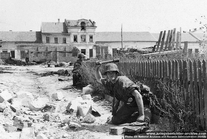 Гренадер позирует. Гранатный бой у немцев был отработан еще в ПМВ, в этом наши поначалу уступали, хотя наши гранаты были и лучше - немецкий терочный запал очень часто отсыревал.