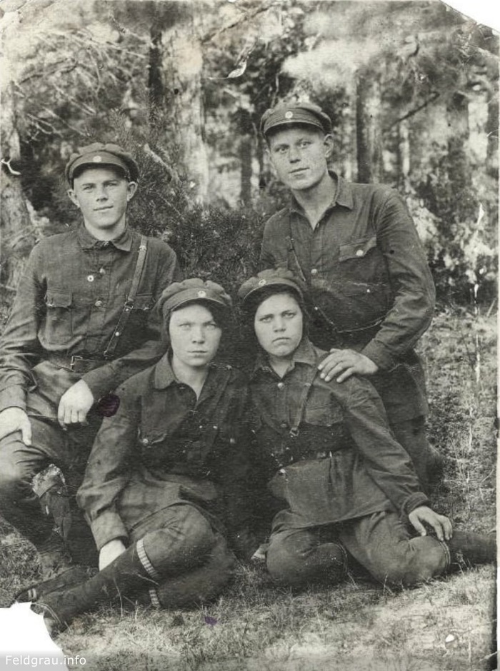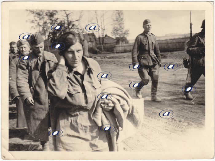 Пленные медики - бабушка одного из моих друзей по ЖЖ на переднем плане. Сумела сбежать пока вели в лагерь.