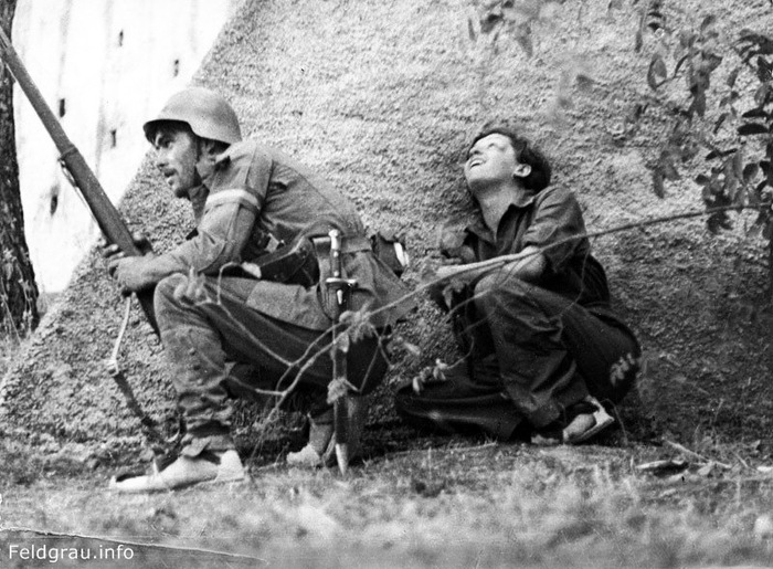 1936 год. Испания. Герда Таро и республиканский солдат во время налёта авиации франкистов в Кордова.