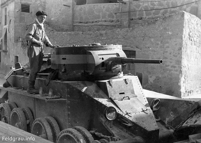 1938 год. Испания. Республиканский танк БТ-5 захваченный франкистами в г. Теруэль