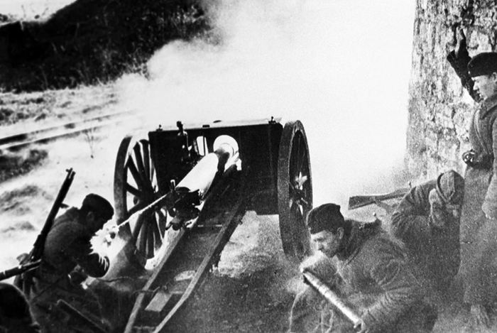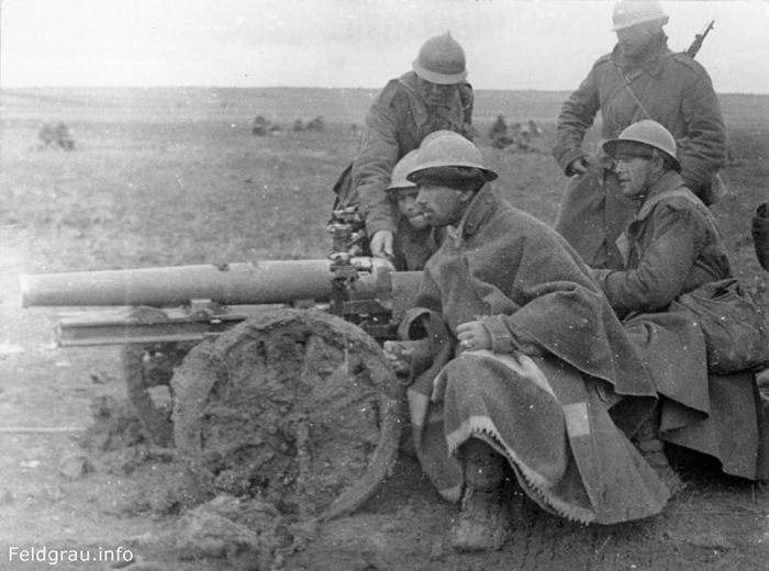 937 год. Испания. Националисты у артиллерийского орудия во время боёв у города Гвадалахара