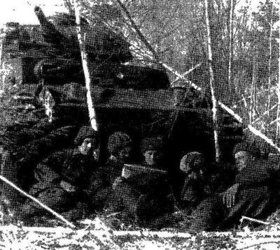 Под Ржевом. После атаки Валентайнов. По-моему танк справа уже перевалил за окоп, обстреливали его сзади, ответить толком не смог, хотя башня и развернута - снаряды у Валентайнов тогда были только бронебойные, они по артиллерии и пехоте - никакие. 40 мм - фигня.