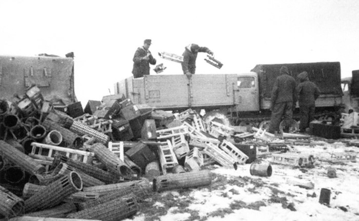 Загрузка снарядов в КВ. По две штуки в "чемодан" - а потом слоем чемоданы на дно танка.