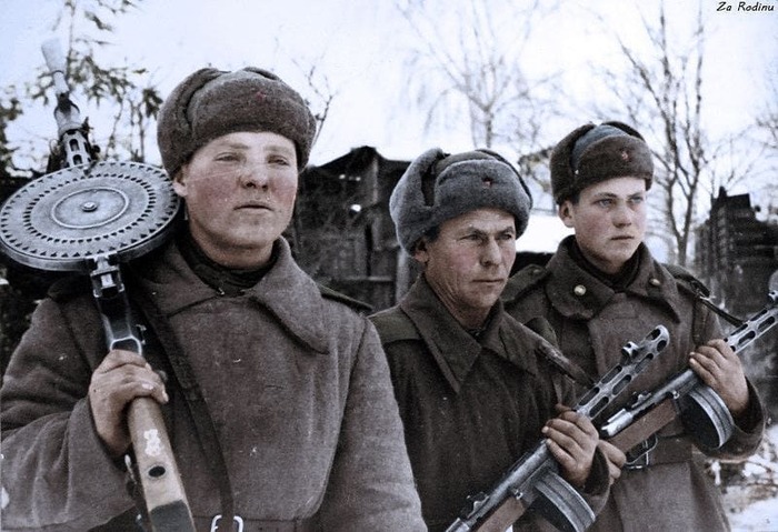 Расчет ДП-27. Можно сравнить лица солдат с предыдущим снимком, чтоб понятно было почему ленинградцев обзывали "обезжиренными".