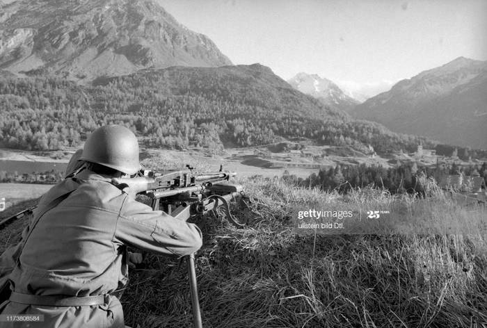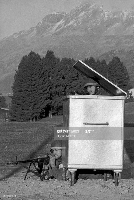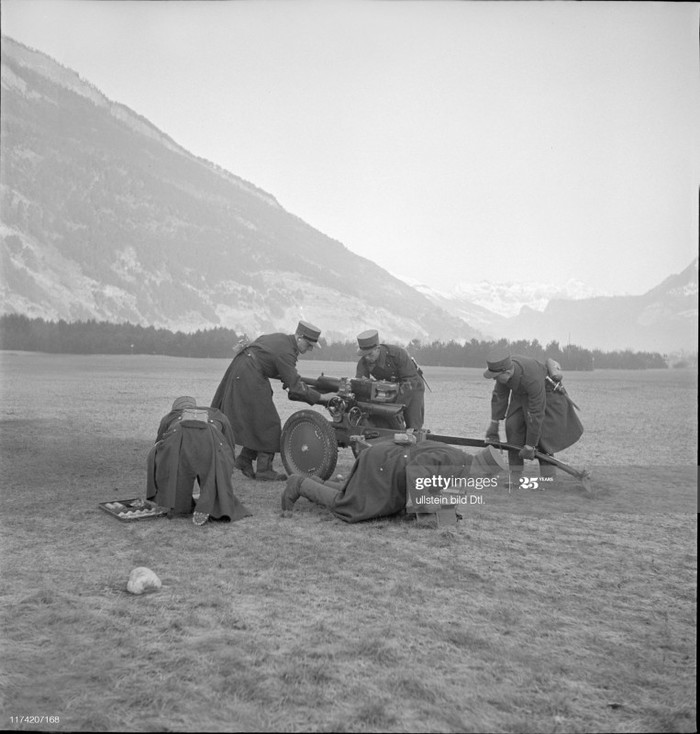 Курсанты офицерской школы швейцарской армии, дислоцировавшейся в Цюрихе, во время учебных занятий; 1940-й год