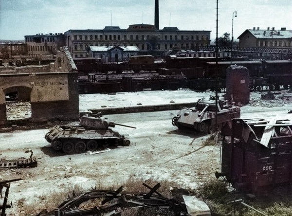 6 ноября. Ехали очень быстро, но часа в 2 ночи остановились. На станции пусто, после боев все разбито. Достать ничего нельзя. Утром была лекция о 26-й годовщине Октябрьской революция. «Ур-ра» вышло не дружно, потому что все замерзли и думали скорее попасть в вагоны. Вечером ходили к девчатам, что живут неподалеку. Живут плохо, девушки все в лаптях.