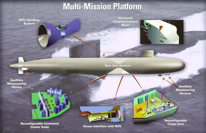 В конструкцию лодки включили дополнительный отсек Multi-Mission Platform длиной ок. 30 м. В нем предусматриваются дополнительные кубрики для 50 бойцов, командный пост, шлюзовая камера, помещения для хранения специальной аппаратуры и снаряжения и т.д. Также отсек MMP несет различные дистанционно управляемые подводные аппараты. При помощи MMP подлодка способна перевозить боевых пловцов и обеспечивать их работу, выполнять различные разведывательные и диверсионные задачи.