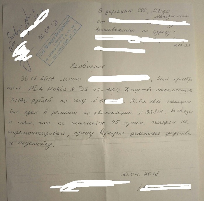 Мне за ней бегать с деньгами, или писать ей письмо первой, или как себя вести? Заявку на возврат она унесла с собой, но там просто распечатка, которую она заполнила, без моей подписи и печати.