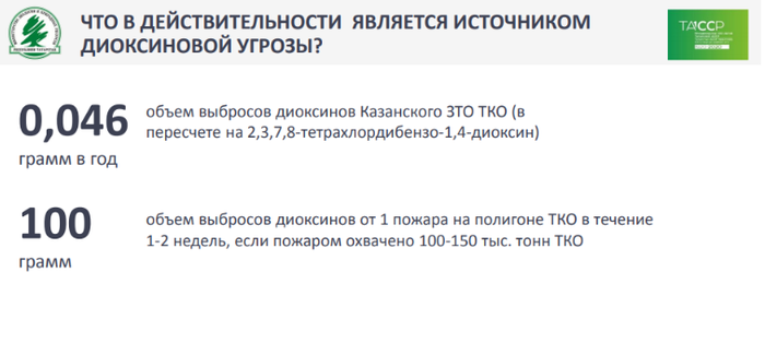 Особое место в отчете отведено диоксинам, как наиболее токсичным продуктам горения. Первые мусоросжигательные заводы действительно производили их достаточно много. Но технологии совершенствовались, и с 1985 по 2012 год эмиссию этих веществ удалось снизить на 99,5%. Показательно, что уже в 2005 году Германия вычеркнула заводы waste-to-energy из списка крупных источников выбросов диоксинов, пыли и тяжелых металлов. На сегодня вклад всех американских установок по энергоутилизации в общий объем выбросов диоксинов составляет 0,54% или 3,4 грамма в год. Для сравнения, после небольшого фейерверка концентрация диоксинов в воздухе в течение часа (0,064 нгр m−3) вдвое выше, чем от работы крупного завода (0,030 TEQ ng m−3).