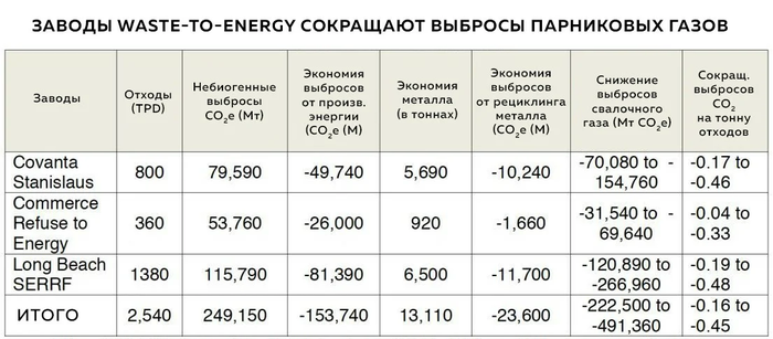 Один из главных выводов отчета: заводы по энергоутилизации существенно снижают выбросы парниковых газов. В среднем 1 тонна отходов, прошедших термическую переработку, предотвращает эмиссию 1 тонны эквивалента C02.