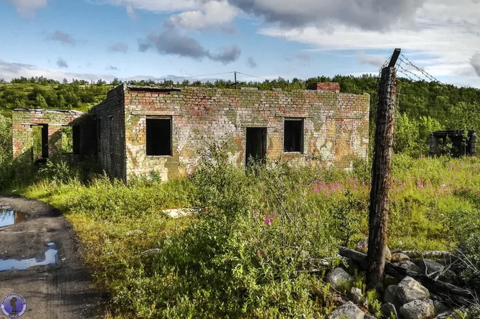 Наш путь начинался с заброшенного КПП в нескольких километрах от этого недостроенного объекта. Вокруг КПП всё ещё стоят покосившиеся столбы периметра.