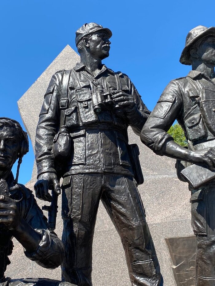 Вот — допетровский стрелец с бердышом. Вот — воин Отечественной войны 1812 года. Далее — советский солдат Второй Мировой…. Вот — воин-интернационалист, «афганец»… Бронзовый караул стоит на вечной страже, охраняя могилы внуков и правнуков, отдавших свои жизни за Россию…