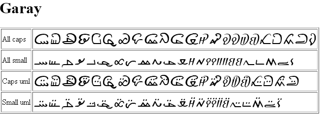 В сентябре 2024 года в Юникод добавили гарай — экспериментальную (уступившую латинице и нко) африканскую письменность. Юникод устроен так, что проги давным-давно знают, что определённый диапазон кодов зарезервирован под письменности справа налево, но с умляутами беда. Firefox первым корректно поддержал гарай около Нового 2025 года, a хромоиды всё ещё (октябрь 2025) не поддерживают.