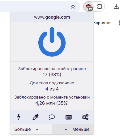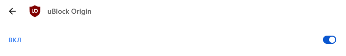 Расширение uBlock Origin снова отключено, но в этот раз без возможности включить обратно. Переключатель "вкл/выкл" заблокирован