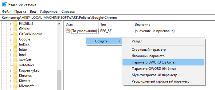 2. Перейдите в этот раздел: HKEY_LOCAL_MACHINE\SOFTWARE\Policies\Google\Chrome