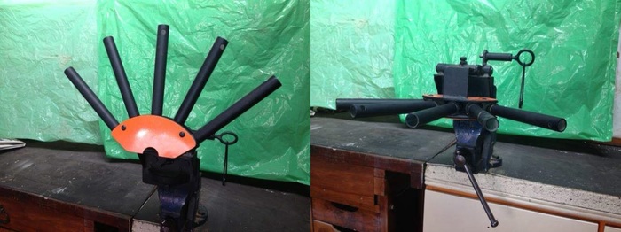 KQ- пятиствольная установка под патрон 12-го калибра. Как и описанные выше устройства, предназначалась для монтажа на средствах передвижения (но могла использоваться и для обороны неподвижных объектов).