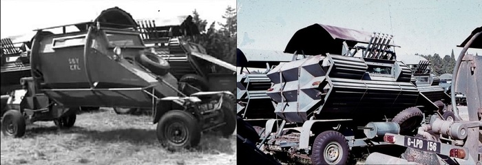 Ну и последнее устройство. Данное полукустарный девайс, представляющий из себя спарку (а иногда- и строенную установку) из автоматов Калашникова, использовался на некоторых автомобилях LandRover, принадлежавших родезийской полиции [7].