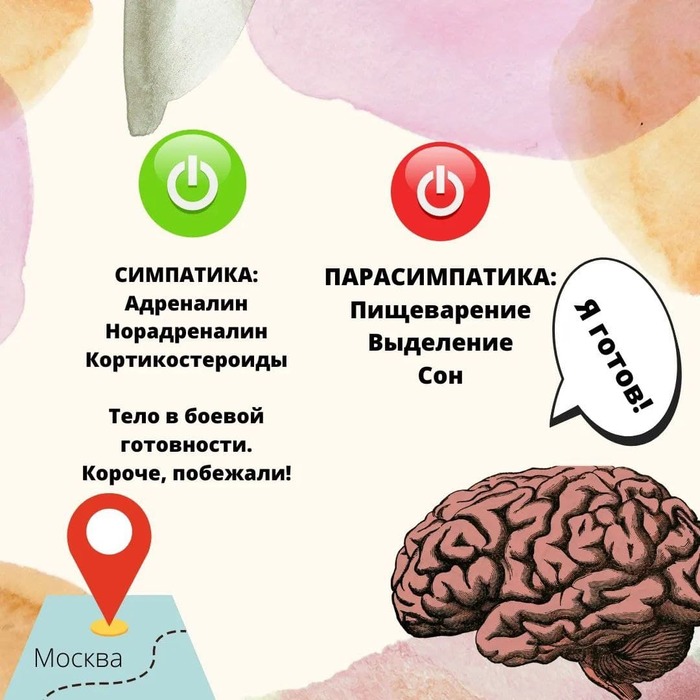 3️⃣ Тело мобилизует все ресурсы организма для решения проблемы и рвётся в бой.🦨 Парасимпатическая нервная система (восстановление ресурсов - сон, еда) уступает место симпатической (мобилизация организма и выброс стрессовых гормонов).