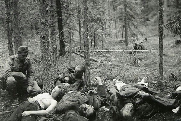 14 марта 1942 года. Военный следователь военной прокуратуры 10 ГСП младший военюрист Степаченко, военком 35 ГСП батальонный комиссар Баньковский, представитель Политотдела старший батальонный комиссар Пегоев, старший политрук Сердюков, военврач Кравчук, гвардии красноармеец Филин, сего числа составили настоящий акт в том, что в районе 35 гвардейского СП, 8-й стрелковой роты, на восточном берегу реки Западная Лица обнаружен труп красноармейца, зверски замученного фашистскими бандитами из 6-й горно-егерской немецкой дивизии. Фамилию красноармейца установить не удалось, ввиду отсутствия каких-либо документов.