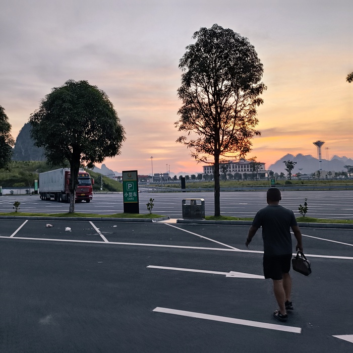 Будильник сработал в 5:45. Итого всего 4 часа сна. Этого явно недостаточно, но я все же вываливаюсь из палатки, чтобы собраться и полюбоваться рассветом. Чжау Юн вот-вот проснется и мы отправимся в долгожданный Вьетнам!