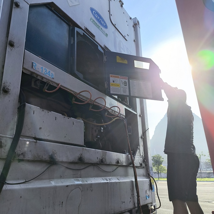 Осталось каких-то 100 километров до границы и у нас что-то случилось с рефрижератором, где хранятся наши драгоценные дыньки. Может задержимся.