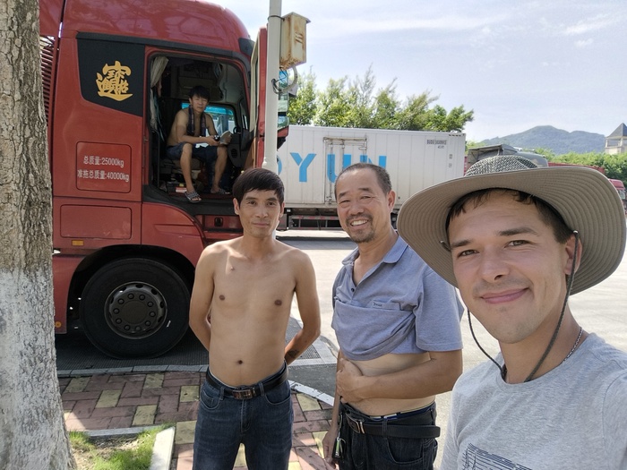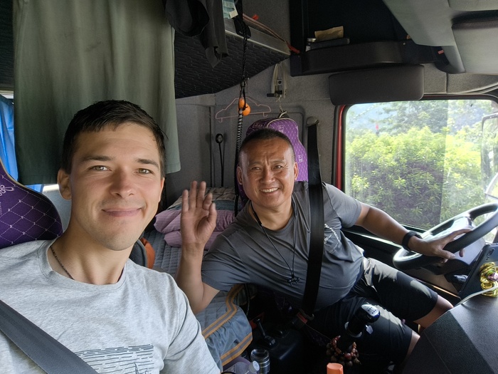 Попрощались на сервисной станции недалеко от границы. Дальше Чжау Юн разгрузится, загрузится другим грузом и поедет обратно. Этот цикл бесконечен.
