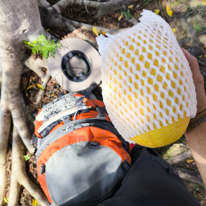 На следующий день стояла точно такая же жара, поэтому посвятил его чистке снаряжения, себя и немного еде. Съел подаренную дыню. Надо набраться сил, чтобы сделать рывок на юг Вьетнама, где сейчас 30 градусов, а не 40, как здесь. Интересная тут разница сезонов.