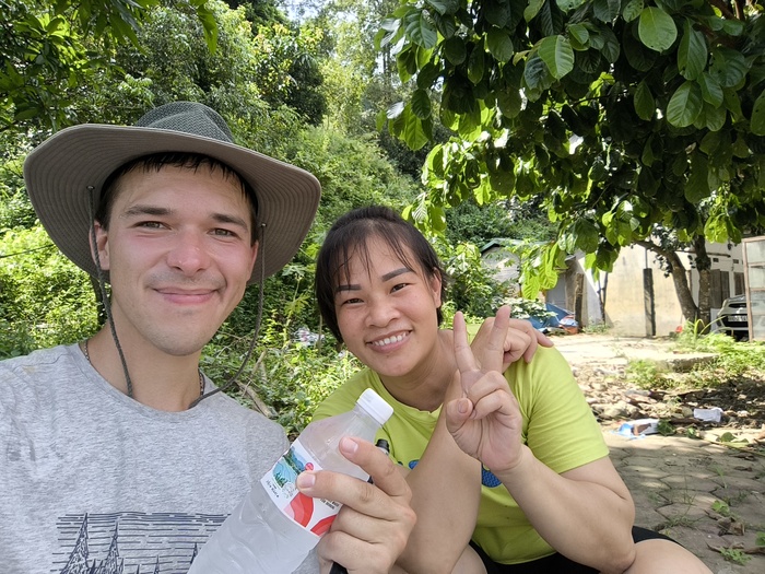 Не успел я подыскать подходящее для остановки машины место, как самостоятельно остановился Тун Ань. 29-летний парень, что работает с документами на границе. Похоже, что Вьетнам тоже рад меня видеть!