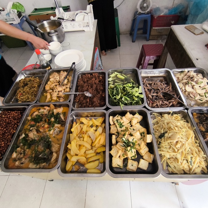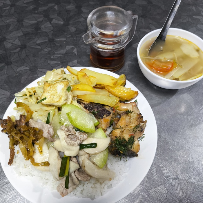 Время перекусить. Заглянул в местную кафешку, где заказал любимое блюдо, о котором я уже писал ранее (называется "на ваше усмотрение"). Пояснил, что ещё ничего из вьетнамской кухни не пробовал, так что интересно всё. Ответили, что сделают мясной рулет. Посмотрим!