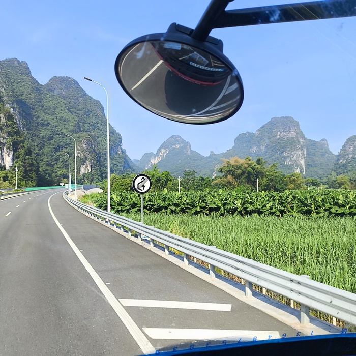 Доехали до объездной Пинсяна, городка на границе с Вьетнамом. Счётчик на съезде с автобана указал, что проезд стоил 7395 юаней за 2000 километров. 85000 рублей по нынешнему курсу. Наши дыньки и вправду драгоценные...