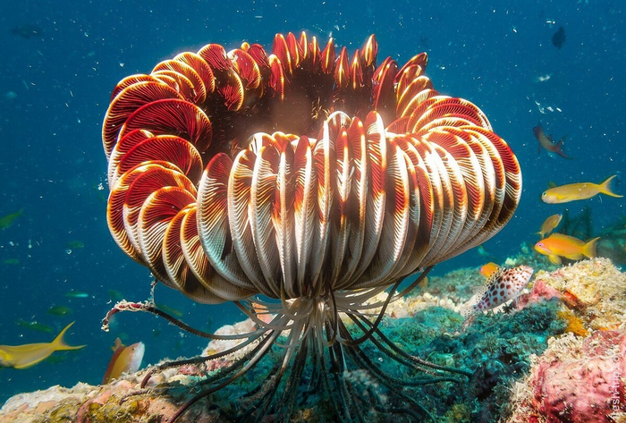 Если рыба живёт в морской или океанской, солёной воде, то концентрация солей в тканях рыбы, наоборот, меньше, чем в воде – поэтому осмотический насос тоже работает наоборот: постоянно «вытягивает» воду из клеток рыбы, и через жабры, и через глаза, и просто через кожу. Так что морским рыбам (как людям!) приходится время от времени пить, то есть проглатывать воду в желудок. Иначе рыба погибнет от жажды – несмотря на то, что плавает в воде! А вот «писают» морские рыбы редко, зато весьма концентрированным солевым раствором – потому что в морской воде содержится очень много солей, ненужных организму. Эти соли рыба отфильтровывает почками и выводит наружу.