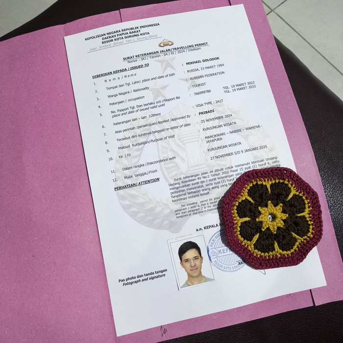 Из-за сложных отношений между индонезийскими властями (в том числе армии и полиции) и папуасами некоторые читатели убеждали меня не рассказывать полиции о своём желании помочь племенам. Они считали, что это вызовет негативную реакцию. Поэтому я должен прояснить: за всё время путешествия по Западному Папуа я ни разу не столкнулся с тем, чтобы полиция негативно высказывалась о местных жителях. Любые мои попытки помочь им воспринимались с одобрением. Ложь — плохой путь. На лжи нельзя ничего построить.