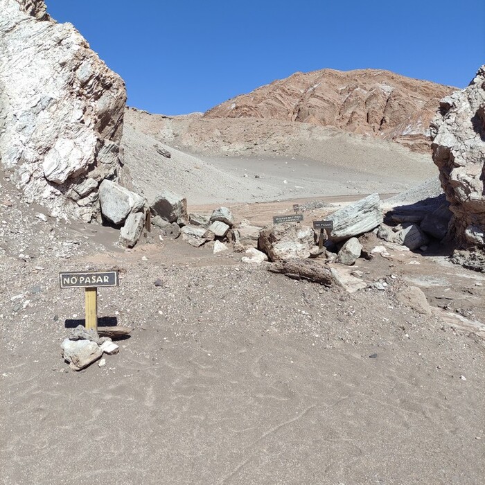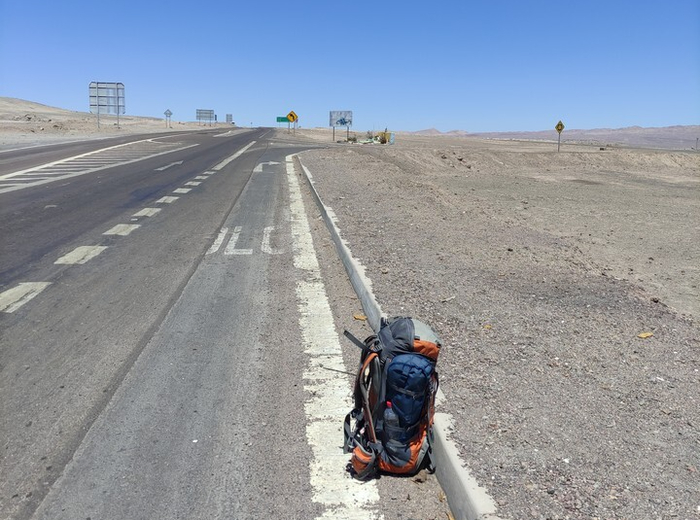 За пятнадцать километров до города прошу высадить меня прямо посреди Атакамы. Хочу зайти в Лунную долину с обратного входа и пройти трек прямо до Сан-Педро. Судя по карте, там тоже есть вход, проблем возникнуть не должно.