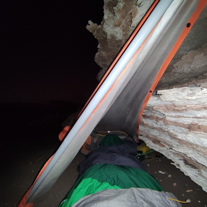 С трудом нашел в себе силы поставить вариться еду, но шквалистый ветер перевернул всё — на меня и на вещи. Больше всего жаль бесценную воду.