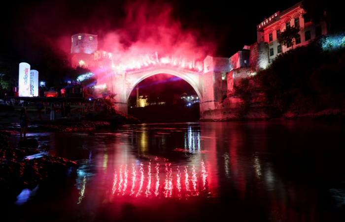 В Боснии и Герцеговине прошел конкурс ночных прыжков с моста.