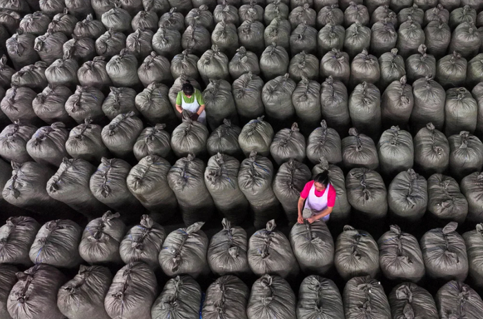 В Китае упаковали партию коконов шелкопряда.