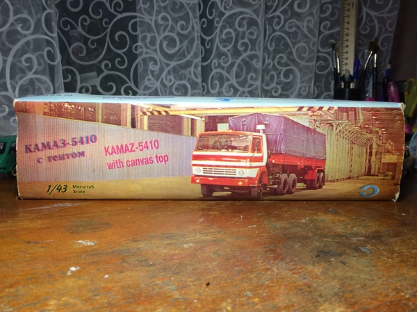КАМАЗ 5410 с полуприцепом ОдАЗ-9370 с тентом. Это уже моя моделька, была куплена в Кисловодске (2004-06) за 370р, судя по ценнику на нем. ОАО «Завод Элекон»