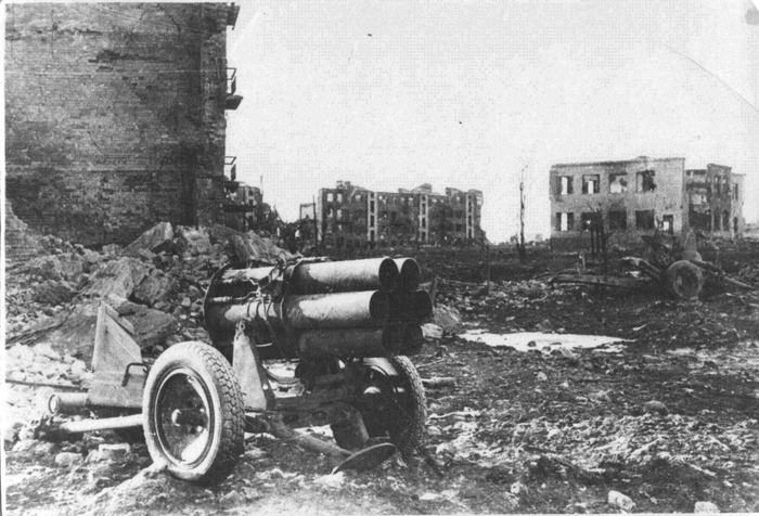 1943 год. Расчищенный от завалов и мусора жилой квартал Тракторозаводского района Сталинграда. Работники завода по 12 часов ремонтировали танки, а после трудовой смены шли на уборку города, восстанавливали разрушенные здания