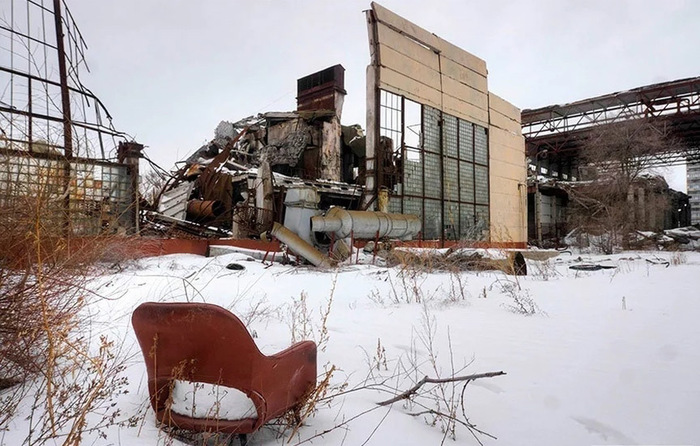 Март 1943 года. Разрушенный заводской поселок. На переднем плане - разбитая пушка. Скоро она будет переплавлена на металл, который станет частью боевой брони танка