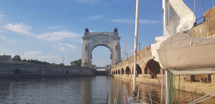 Сегодня проснулись в 5.00 утра, тут же запросили первый шлюз, смогут ли принять нас сейчас. На удивление они сразу же дали добро и спустя каких-то полчаса мы уже швартовались в камере первого шлюза.