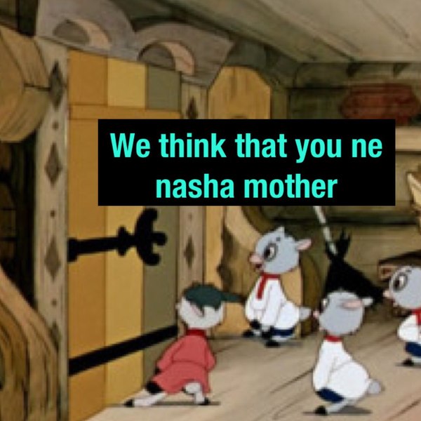 Уходит коза пастись, приходит волк поет песенку козы, но семеро козлят ему говорят что-то вроде этого: