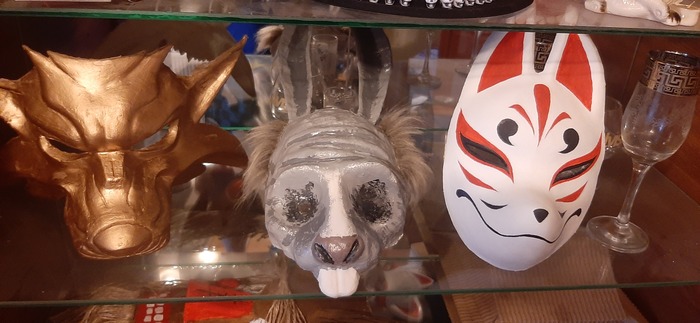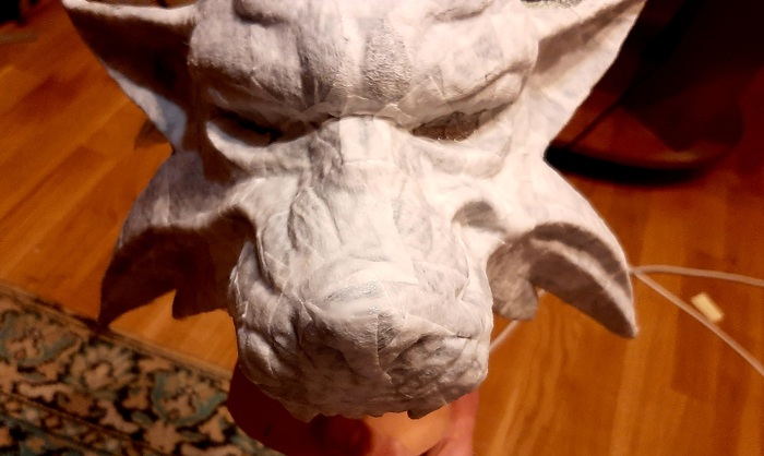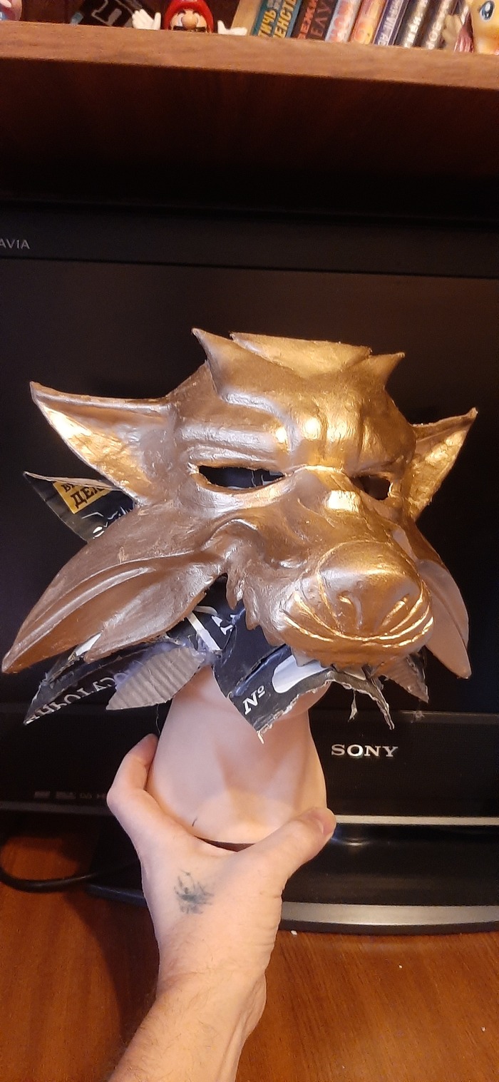 Здравствуйте уважаемые Пикабушники и мои немногочисленные подписчики! После маски зайца, я решил, что так как уже есть лиса и заяц, логично будет сделать маску волка. Долго искал подходящий для этого образ, пока не установил себе на дохленький комп Ведьмак 3, на минимальных настройках идёт даже неплохо. Сначала появилась идея сделать маску по образу медальона Школы Волка, пока я не начал задание в котором Геральд должен был явиться на бал-маскарад в костюме и маске, купил у нужного торговца необходимое, естественно выбрал маску Волка и, вот она идея для творчества! Технология изготовления по-прежнему та же, что и всегда: на Николае смастерил из картона, скотча и с помощью клеевого пистолета каркас чтобы сократить расход скульптурного пластилина