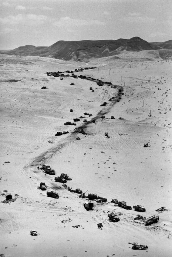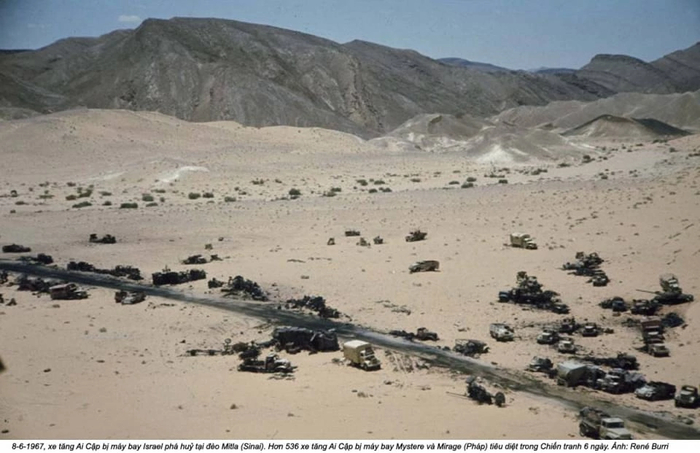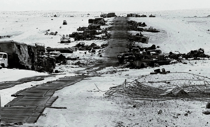 5 июня 1967 года с операции "Мокед" началась Шестидневная война, наиболее яркий пример классического "блицкрига", реализованный после Второй мировой. Израильтяне произвели три последовательные волны ударов по аэродромам арабов, захватив господство в воздухе. Кадры этого погрома широко известны. Но завоевав небо, ВВС Израиля сыграли важную роль и в поддержке наступления своих моторизованных частей в Синайской пустыне. На фото результат грандиозного избиения, устроенного с воздуха частям 5 пехотных и 2 танковых египетских дивизий у перевала Митла, единственного оставшегося пути, по которому египтяне пытались выйти из намечавшегося большого окружения. На Синае было уничтожено/брошено около 10 000 единиц египетской различной техники, включая около 800 танков. У наших людей, ничего не знающих об арабо-израильских войнах, весь анализ событий сводится к полосканию арабов, "не умеющих воевать". В действительности, подготовка Израиля к войне против широкой коалиции, буквально "кольца врагов" вокруг страны, и трудности, с которыми на этом пути столкнулись израильтяне и которые они преодолели, представляют собой поучительный пример в деле государственного и военного строительства. И именно в этом и кроется причина израильских успехов, а не в переводе всех стрелок на арабов.