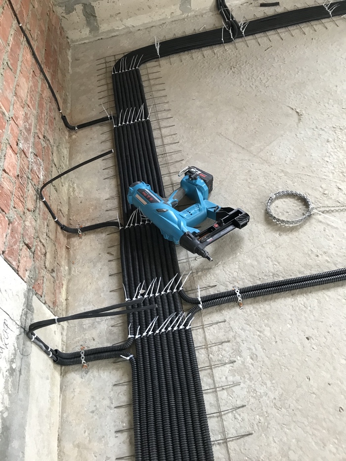 А здесь укладка провода в штробу. Чистенько, ненапряжненько.