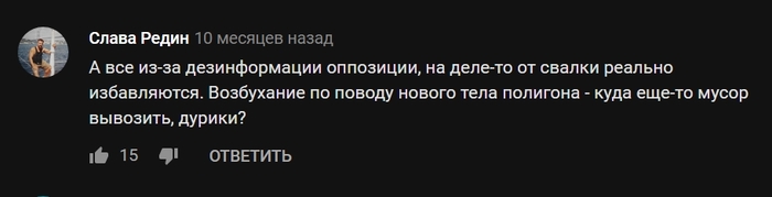 А вот это уже история, хоть и новейшая, но показательная. Тогда люди в Волоколамске устроили народный бунт и началась война, но не в жизни, а в интернете. Реально поднялась дикая, отвратная орда кремлеботов, которые наводнили своими зелёными тушами ютуб и под каждым видео писали что угодно, но упоминали Навального и оппозицию . Примерно следующее выходило - Динозавры вымерли конечно от метеорита, но вот Навальный радуется сука этому! Да! Не раскачивайте лодку! Мусор вывозится с полигона мусоровозами! Мусоровозами... городскими...мусор... вывозится.... Это как пытаться вывозить мусор с помощью молоковоза. Городской мусоровоз имеет наглухо закрытый кузов, он может только грузить в него с помощью погрузчика мусор, контейнерами заполненными и само собой не может принимать в кузов ковш экскаваторный, какой нужен для вывоза мусора и любого иного груза.