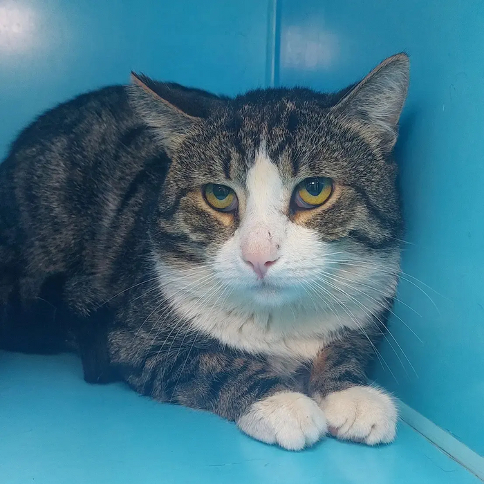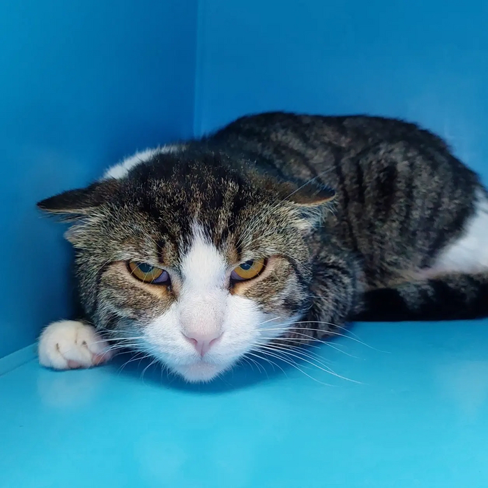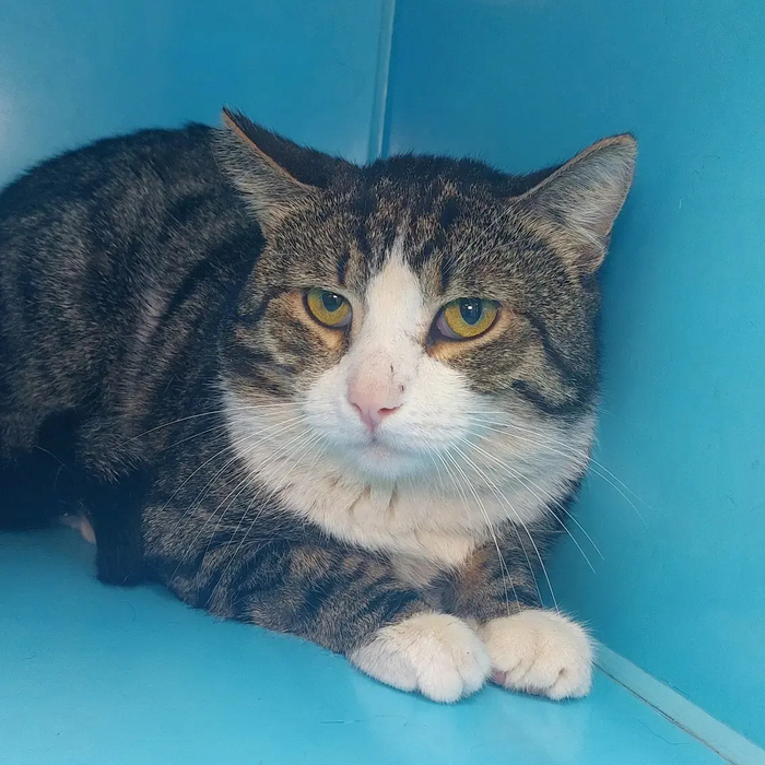 Примерно полтора года он прожил на улице, его кормили неравнодушные соседки. А потом он заболел. Заболел то ли ринотрахеитом, то кальцивирозом - сейчас я и не вспомню. Тогда его кормилицы распереживались за него, и даже одна бабушка взяла его домой на время лечения. Вроде пролечили.. Но потом его снова вернули на улицу.