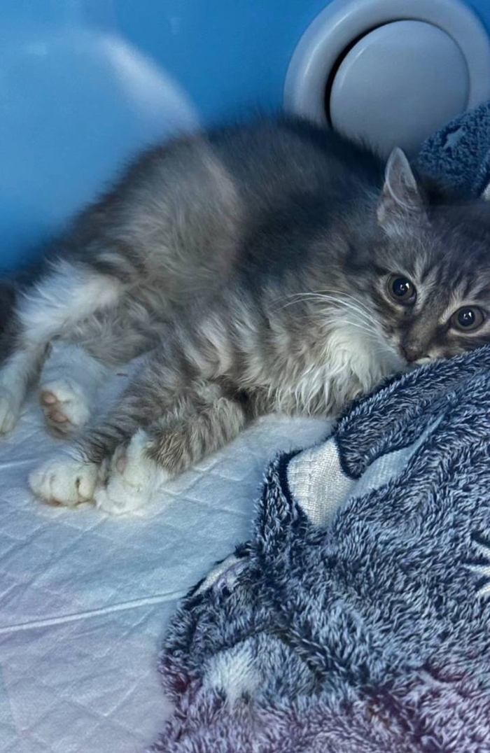 Котёнка, по моей просьбе, перехватил и отвёз в клинику другой волонтёр.