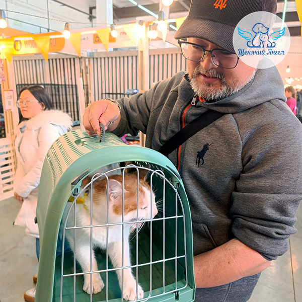 Они долго смотрели на разных животных, но остановились у Чарли — того самого, рыжего с белой грудкой. Пообщались с волонтёрами, узнали историю спасения, погладили кота. Чарли мурлыкал, тёрся о руки, давал себя гладить.