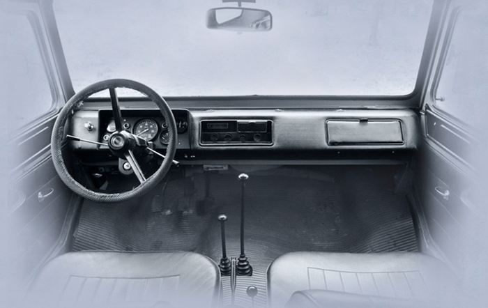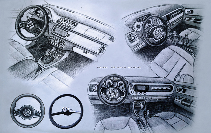 Что касается внутреннего убранства «волыни», то здесь присутствуют также три составляющих оригинального ЛуАЗа: двухспицевое рулевое колесо; приборная панель, стилизованная под формы прототипа (козырёк над комбинацией приборов / выраженная длинная, монолитная форма панели); четыре круглых переключателя, которые утоплены в центральную верхнюю нишу на приборной панели, пожалуй и всё сходство, так как в те времена интерьер был скучным и однообразным.