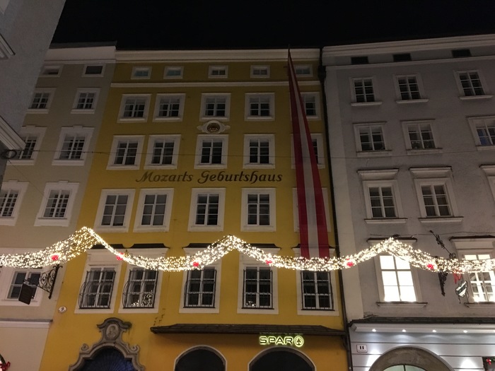Зальцбург - город, который связан с Моцартом и который посещают туристы - кто-то посмотреть на горы, кто-то как перевалочный пункт, но, тем не менее Моцарт тут везде. По приезду в отель - везде Моцарт - открыточки, буклеты и т.д. Гостиница имени Моцарта, площадь имени Моцарта. Моцартовы шарики - конфетки пралине за 30 евро, концерт Моцарта за 24 евро, супер выгодный вход в музей Моцарта за 25 евро. Главное, исходя из разных данных в его городе его так и не признали при жизни. Но мы тогда не жили и оставим историю истории и вернёмся в современность. И тут идём вот посмотреть на достопримечательность - улицу и дом, где он родился, а тут - мусорки! Мусорки! И супремаркет...Мда...
